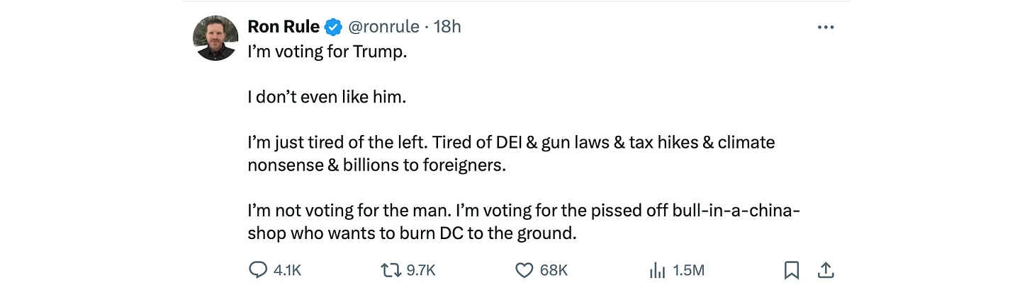 “I’M JUST TIRED OF THE LEFT” is likely to crush “Orange Man Bad”.