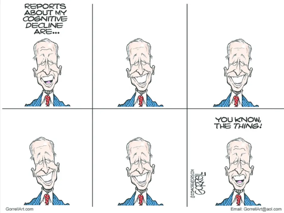 What is so funny is the total lack of comprehension that the man the Left is now accusing of mental decline is still outperforming their own incipient cadaver on all fronts. He can walk, he can talk, he can go up and down stairs, he can find his way on and off stages, he only shakes hands with and has conversations with people who are alive, he can and does put in 10-hour days on a regular basis, he doesn’t crap his pants, he doesn’t get lost crossing his own lawn, he knows the names of world leaders, and in general is a Not-Joe. It’s just funny to see the Left having to abandon its futile efforts to claim Joe does not have dementia and shift, quite abruptly, to the strategy of “so what if our guy is a mess, so is yours”.