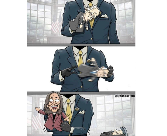 No. She’s an idiot. She’s a commie. She’s taken every stupid position the Left has demanded since she entered public life. She’s a desperate stop-gap the Democrats were forced to turn to after Biden imploded and DEI requirements prevented anyone better from getting the slot. Meanwhile, our guy just forced out a sitting President after surviving an assassination attempt. Seriously, guys: grow a pair.