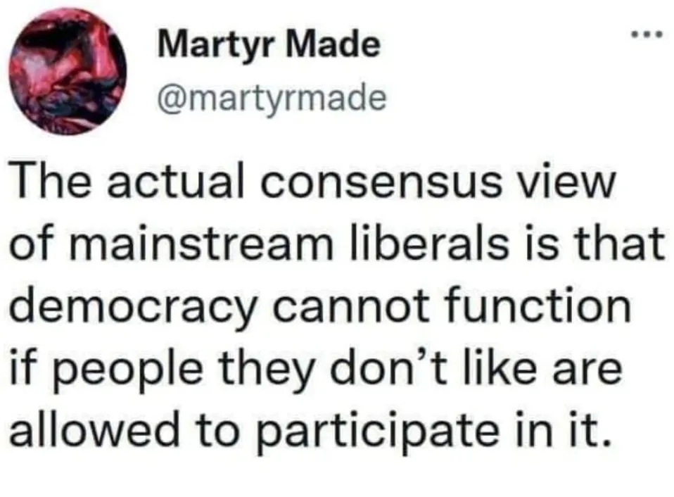 Note the total lack of actual ideology here. It’s all feelz and virtue signaling, without a hint of the true structure of the party, which is one of consolidation of power in the hands of a few elites to establish a top-down government based on a massively powerful Central Authority, with little or no power left to the states or to the people. It is a political model of collectivism, vs the power and agency of the individual.