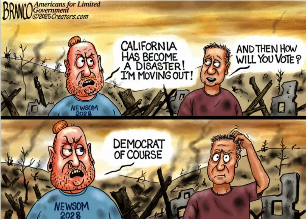 If the California GOP was on the ball they would be hammering the idea that this is the ideal time for SoCal residents to make the kinds of changes necessary to keep their area livable and functional. That is, elect people not by the letter after their names but by their commitment to government for the people and by the people, and not for elites by elites. The time to spend money on things like burying electrical lines, now that there aren’t houses in the way. The time to revise ordinances and regulations to make sense and contribute to the quality of life, and enable people to rebuild their lives. The time to reject Big Government as ineffective at best and incompetent as usual and corrupt at worst, and develop government that works.