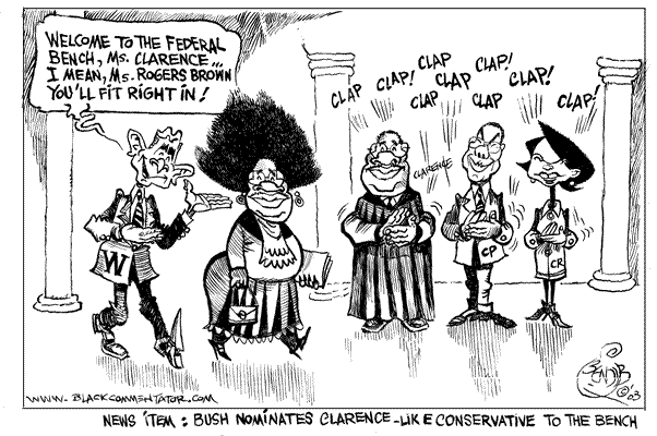 White Limousine Liberal massas and their charges in the media have often utilized racist, stereotypical images as a means of attaching an un-written narrative of dullard, Uncle-Tom-ish or downright gangsta personae to their other-than-white objects of conservative disdain.