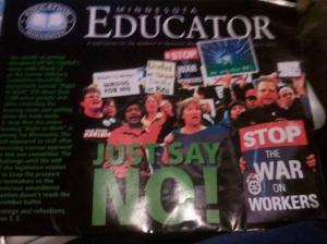 But instead, the public unions, including the teacher’s unions (of which I’m a member) have doubled-down on their self-serving, narcissistic thuggery. They haven’t yet awakened to the fact that with Right to Work going to the ballot this fall, it will no longer be the legislators (whom they used to have in their hip pocket) that they’ll have to convince. They’ll have to convince the very voters of Minnesota why they should remain a viable, omnipotent, political force.