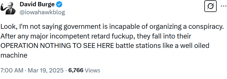 Those who run our world and tell us we must not appease and must not deal with tyrants and so forth are, however, just lying. They’ll appease and deal all they want – when it suits them. And when it suits them to have us oppose the aggressor/tyrant, they’ll have us do so. But only half-hearted. Not all the way! We must stand up to Putin! But, no, not to the point where we’re actually harming him! Its like when we went to war against Terrorism in 2001 but refused to fight the actual Terrorists (you know, the Mullahs in Tehran). All they’re doing, really, is coming up with rationalizations for a policy which profits them the most. And, right now, the policy they want the most is continued war in Ukraine so they can keep harping on the nonsense idea that Trump is somehow Putin’s puppet and his peace deal is worse than Chamberlain at Munich.